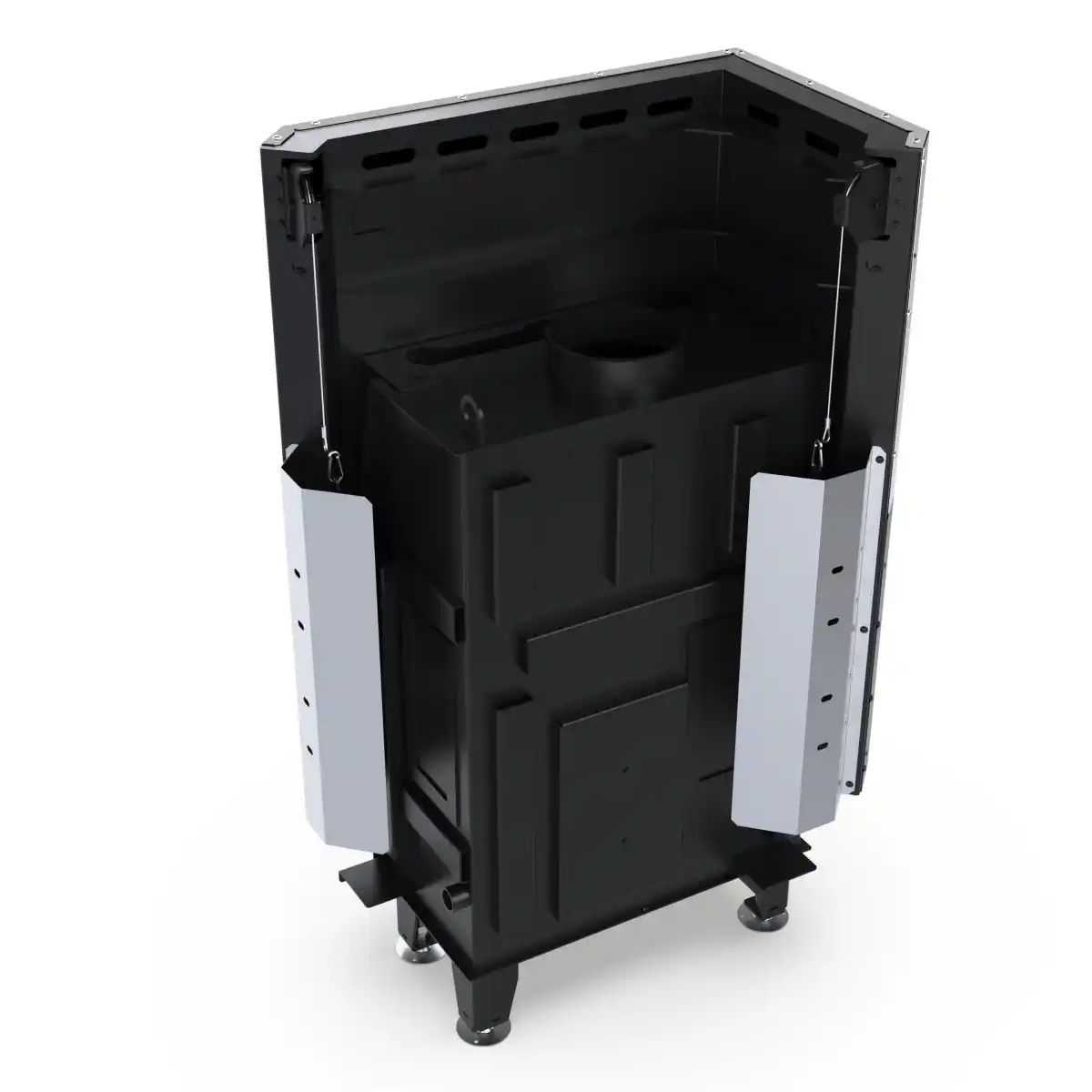 Wkład kominkowy Defro Home Impuls SM BL G został wyposażony w system czystej szyby, deflektor zwiększający wydajność wymiany ciepła oraz system dopalania spalin. Komora spalania wyłożona ceramitonem i solidna konstrukcja ze stali kotłowej gwarantują trwałość i efektywność przez lata. Możliwość rozbudowy o opcjonalne elementy, takie jak blenda stalowa czy klamka po drugiej stronie, daje pełną elastyczność przy aranżacji wnętrza.
