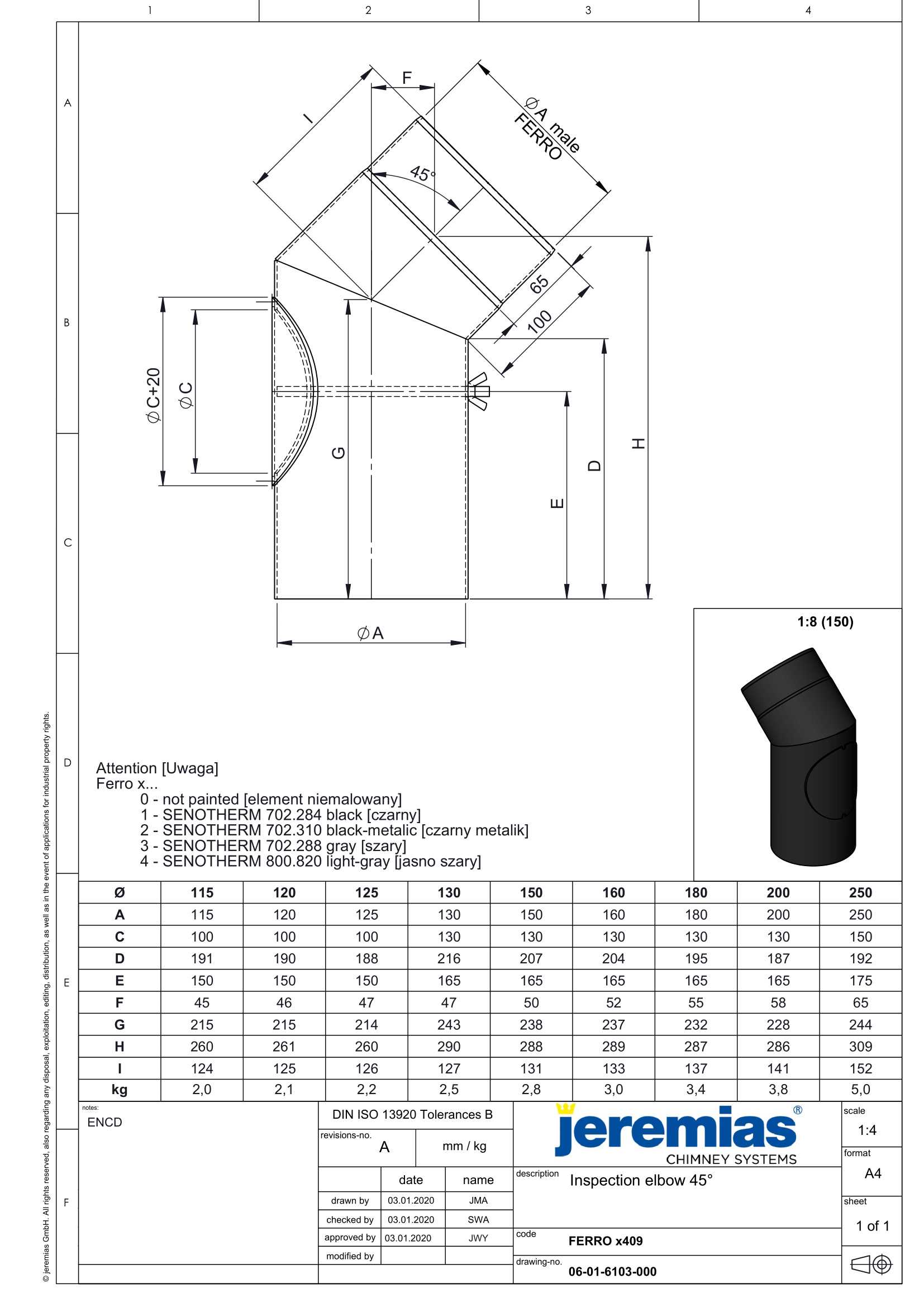 Wykonany z wysokiej jakości blachy stalowej o grubości 2,0 mm, przyłącza te są pokryte specjalistyczną farbą SENOTHERM, która chroni je przed działaniem ekstremalnych temperatur i pożarem sadzy. Modułowa budowa oraz zastosowanie połączenia wtykowego umożliwiają szybki i łatwy montaż.