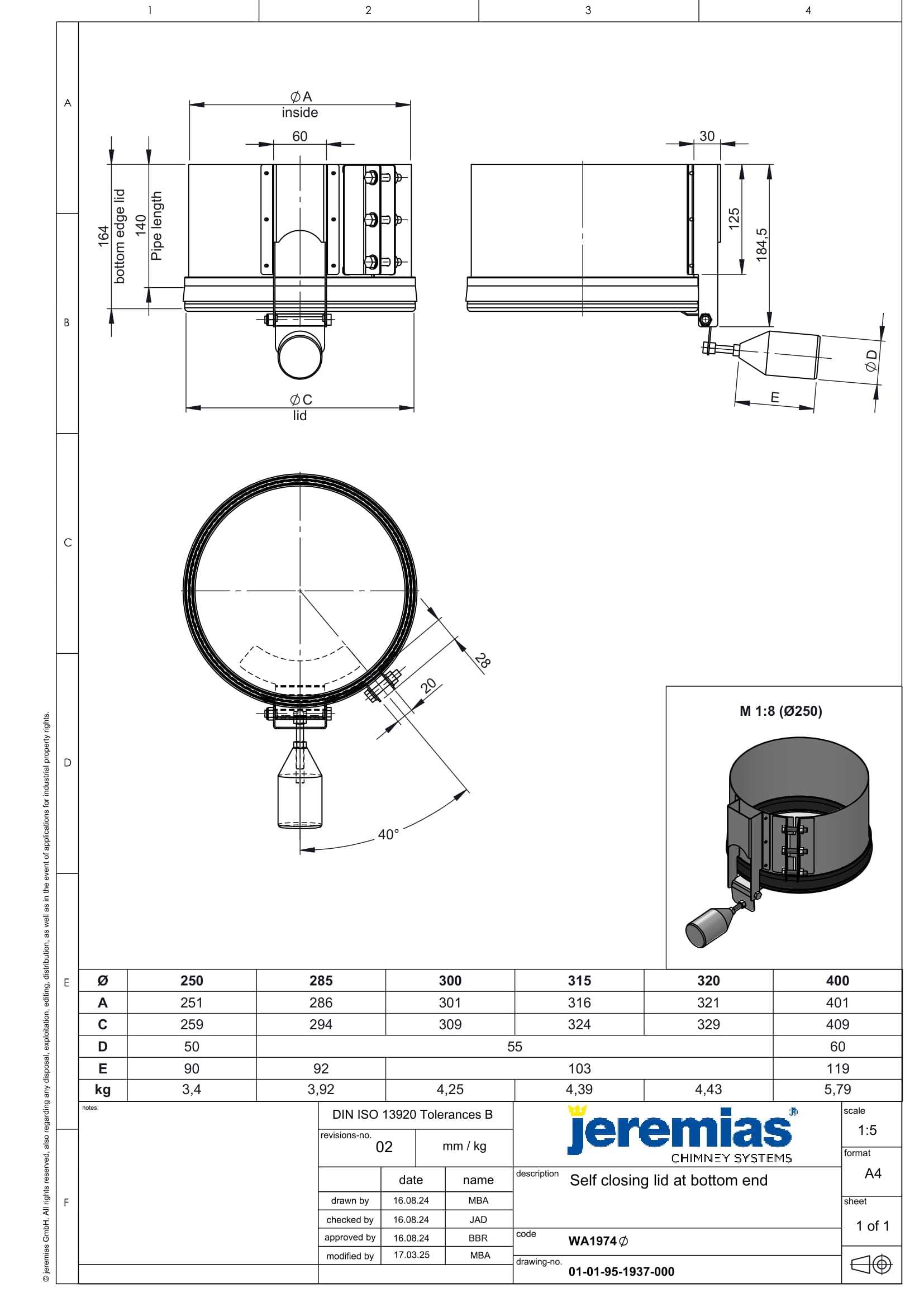 POKRYWA SAMOZAMYKAJĄCA ZAKOŃCZENIA DOLNEGO ZRZUTU – SERIA PRESTIGE FI 300 MM