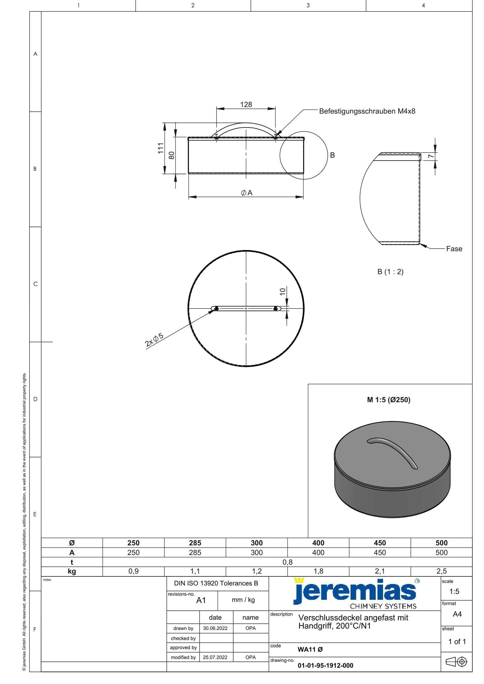 POKRYWA ZAMYKAJĄCA Z UCHWYTEM – SERIA PRESTIGE FI 300 MM